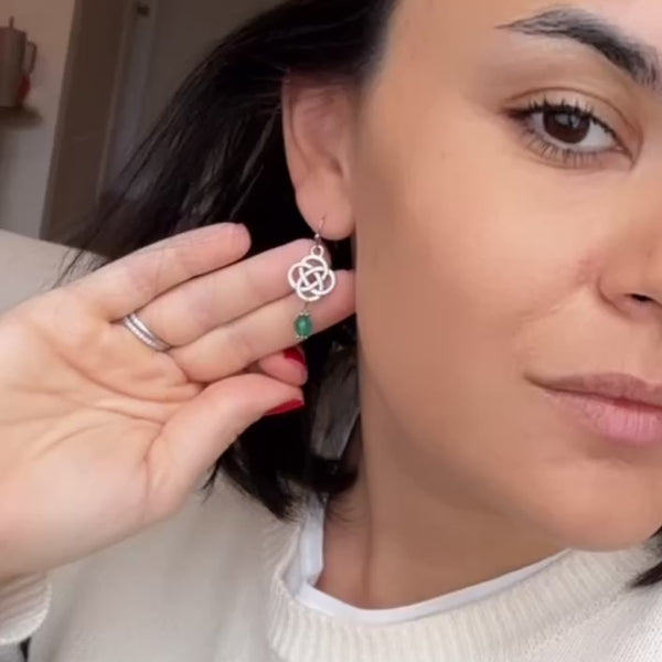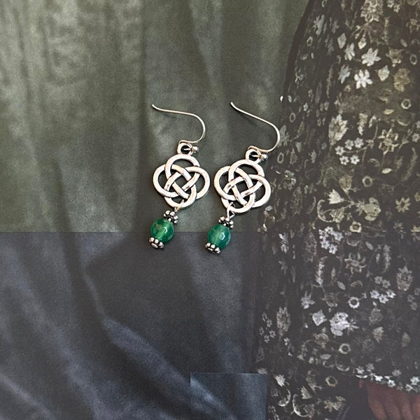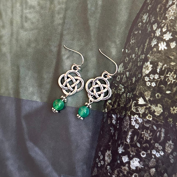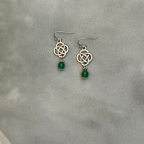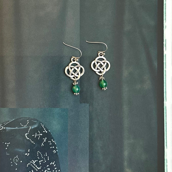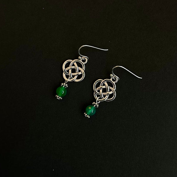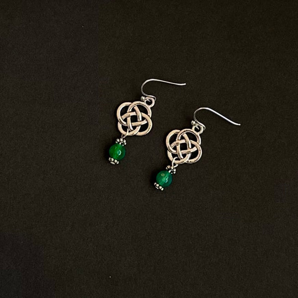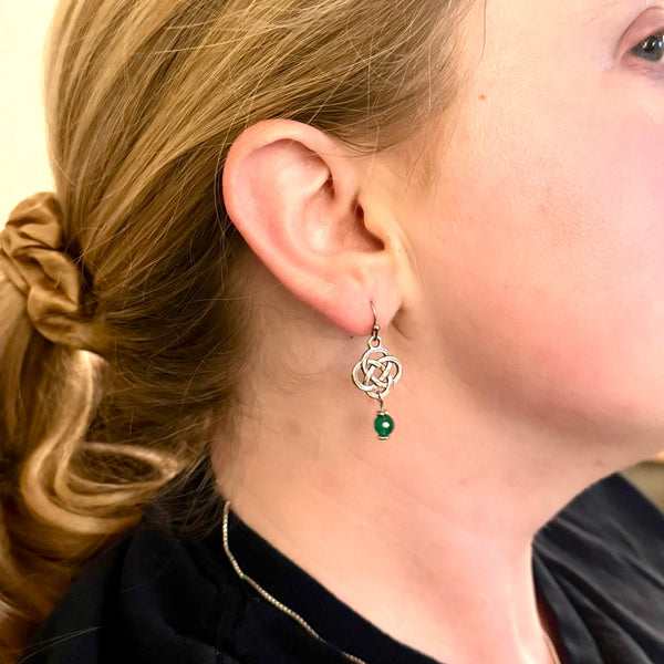 Inspired by timeless Celtic artistry, the Amanda Dangles feature elegant knot detailing symbolizing eternity and connection. Each pair is handcrafted using authentic materials sourced from Ireland and accented with a luminous green glass bead — a subtle nod to the Emerald Isle.