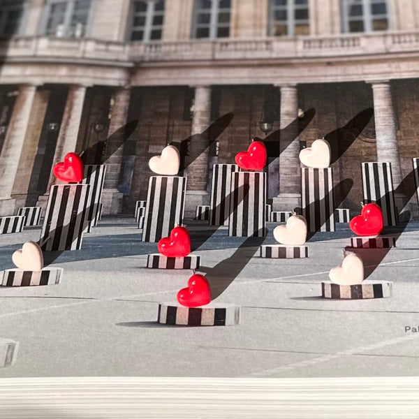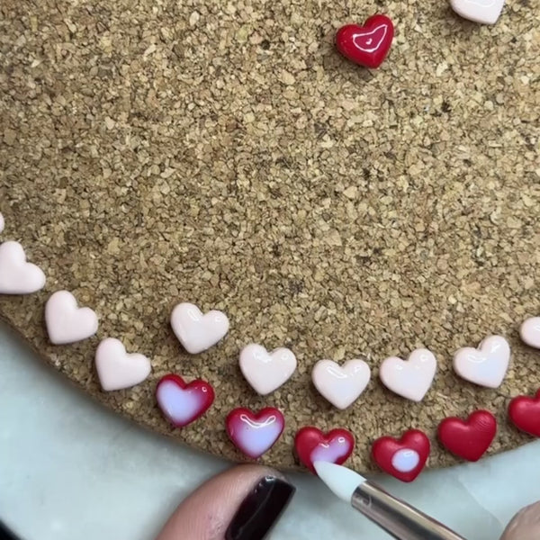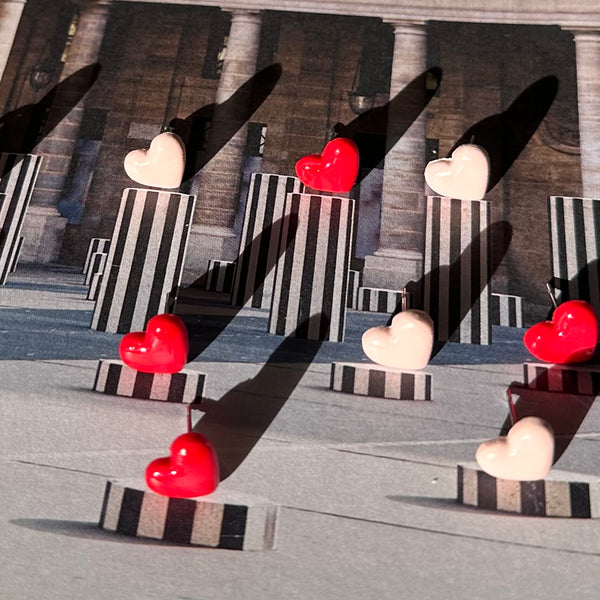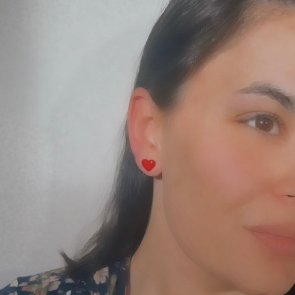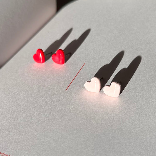 Handmade polymer clay heart studs, designed to be worn every day and loved forever. Each pair is carefully shaped, baked, and finished with a glossy glaze for a smooth, luminous shine. Surgical stainless steel posts are baked directly into the clay for durability, comfort, and long-lasting wear.